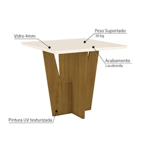 Mesa de Jantar Vértice 90 cm com Tampo de Vidro - Nature/Off White