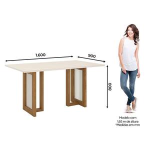 Mesa de Jantar Yara 160 cm Canto Reto com Vidro Nature Off White - Henn