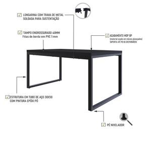 Mesa De Jantar Yon 160 X 90 X 76 Cm Preto Tx/ Preto Tx/ Sobre o ProdutoMesa de Jantar Yon 160x90x77cm YOMJ9160 çoDescrição do Produto:A mesa de jantar Yon YOMJ9160 possui dimensões generosas, combinando elegância com o design industrial. O tampo desta mesa é engrossurado em 40mm e as bordas possuem acabamento em fita de PVC de 01mm, proporcionando durabilidade e uma superfície muito resistente. Os pés são feitos em tubos de aço 30x50mm com longarinas horizontais, conferindo estabilidade, robustez e uma imponente qualidade. Sua combinação de materiais e proporções bem pensadas a tornam uma opção de escolha versátil e elegante para ambientes modernos com um design linha Yon é uma fusão elegante entre o estilo industrial e o contemporâneo. Com linhas limpas, materiais robustos e detalhes sofisticados, essa coleção é perfeita para quem busca um ambiente moderno e funcional. Os móveis desta linha oferecem uma versatilidade notável, adaptando-se a diversos ambientes e necessidades, permitindo a criação de composições únicas e personalizadas. sendo a escolha ideal para quem busca qualidade e estilo em um só Inclusos:1 Mesa de JantarMesa de Jantar Yon 160x90x77cm YOMJ9160 ço: 160 x 90 x 77 cmInformações Logísticas (Comp. X Prof. X Alt.) 168 x 103,5 x 6 cm - Peso: 38,43 KgPeso Total: 38,43 KgObservações: Não acompanha acessórios decorativos. Imagens meramente ilustrativas.Informações Técnicas / Características:- Cor do Produto: ço- Cor do Predominante: Revestido- Marca: Metalig- Modelo: YOMJ9160- Linha: Yon- Material: Mdp- Material da Estrutura / Pés: Aço- Acabamento: BP- Escala de Brilho: Fosco- Fita de Borda: Pvc - Possui Gavetas: Não - Possui Pés: 2- Pés Niveladores: Sim - Acabamento Estrutura: Epóxi-Pó- Formato: Retangular -Observações: Possui 02 Longarinas horizontais de aço.- Suporta Até (kg): 100kg- Comprimento: 160cm- Profundidade: 90cm- Altura: 77cm- Recomendações de Uso, Manutenção e Limpeza: Para a limpeza, utilize flanela seca ou pano macio levemente umedecido em água. Utilize um pano seco em seguida. Evite com produtos químicos (solventes, thinner, acetona, etc) e não utilize nenhum tipo de esponja de aço.- Necessita de Montagem: Sim / Acompanha Manual de Montagem- Complexidade da Montagem: Média: pode ser montado por mais de uma pessoa e/ou necessite de maior conhecimento para montagem.- Garantia: 01 ano Marca: Compace | Quantidade máxima de pedido: 1 | Modelo: YOMJ9160 | Necessita montagem: Sim | Quantidade de volumes: 2 | Profundidade: 90 cm | Material da estrutura: Aço | Produto: Mesa de jantar | Cômodo indicado: Cozinhas | Cor: Multicolorido | Altura: 77 | Tonalidade: Multicolorido | Coleção: Industrial | Requer Baterias: | Certificação Externa: Não aplicável | Componentes inclusos: Manual de montagem e kit acessórios | Largura: 90 | Comprimento: 160 | Peso: 36,51 | Preço de tabela: | Fabricante: Compace | do Modelo: YOMJ9160 | de Caixas: 1 | de Itens: 1 | da Peça: YOMJ9160 | Cozinhas: Cor: Preto TX/