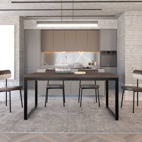 A mesa de jantar Yon YOMJ9160 possui dimensões generosas, combinando elegância com o design industrial. O tampo desta mesa é engrossado em 4cm e as bordas possuem acabamento em fita de PVC de 0,1cm,