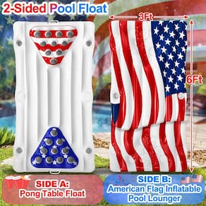 - Jogo patriótico e relaxamento luxuoso: alterne entre o modo competitivo (10 estações de xícaras de cada lado e 4 porta-bebidas ao lado) e o modo chill-out (espreguiçadeira com bandeira contornada com 2 porta-bebidas) - PVC reforçado premium de 0,25 mm suporta 220 libras para uso adulto sem preocupações