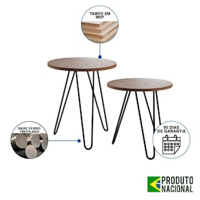 Tipo: Mesa de Canto Modelo: Duo Clips Cor Tampo: Amêndoa Ferro: Preto As mesas vão desmontada e é de fácil montagem.