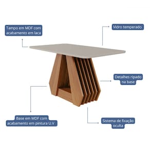 O(a) Mesa de Madeira Agata com Vidro Ripado Cinamomo/Off White - Cimol é produzido em MDF na escala de brilho Semi-Brilho, e possui um grau de dificuldade de montagem: Médio.