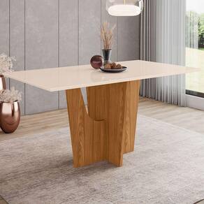 Mesa De Madeira Danielly Nature/off White Sci36 - Henn - Marrom