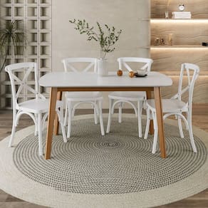 Mesa de Madeira Maciça e Mdf L135 X P 90 X Alt 77 Linea Natural/OffWhite - Cinza
