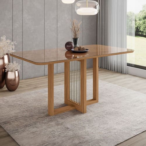 O(a) Mesa de Madeira Natalí 160 Cm com Vidro Natural - Henn é produzido em MDF e MDP na escala de brilho Fosco, e possui um grau de dificuldade de montagem: Médio.