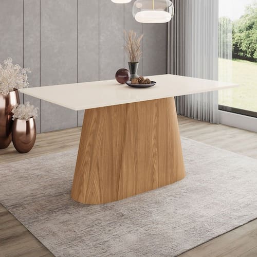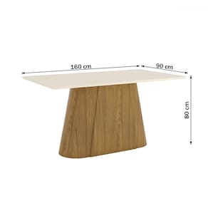 O(a) Mesa de Madeira Olívia 160 Cm Natural/Off White - Henn  é produzido em MDP na escala de brilho Fosco, e possui um grau de dificuldade de montagem: Médio.