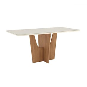 O(a) Mesa de Madeira Vértice com Vidro Nature/Off White - Henn é produzido em MDF e MDP na escala de brilho Fosco, e possui um grau de dificuldade de montagem: Médio.