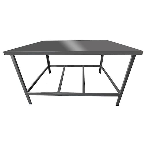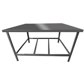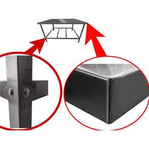 Essa mesa de bancada possui pés e travessas em aço carbono com espessura 0,9cm. Seus pés contam com acabamento de plástico, para que a mesa inox não se mova durante a sua utilização.