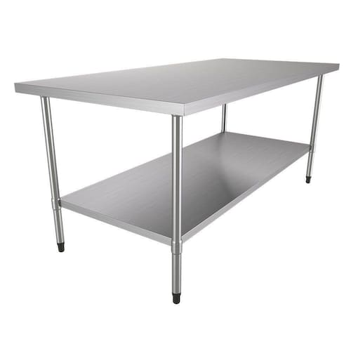 Ideal para Padarias, Açougues e comércios que necessitem de uma Mesa Total Inox, a Mesa de Manipulação Metalcubas é fabricada em pés tubulares de 11/2" em aço inox 430 com tampo e estrutura da mesa em aço inox escovado 430 de 1mm de espessura.
