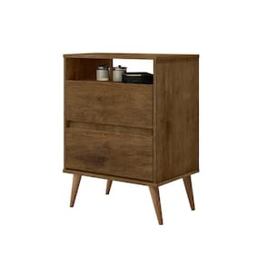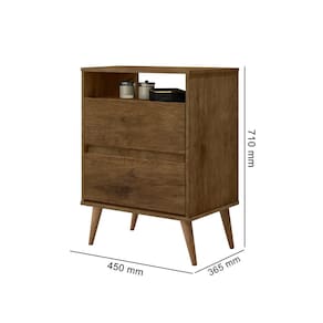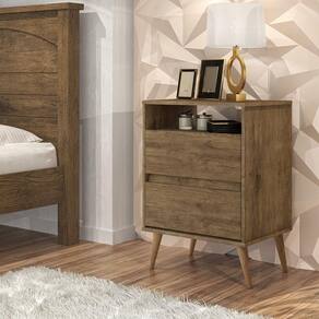 Mesa de Mesa de Cabeceira 2 Gavetas Lotus JA Móveis produzido em MDP, pintura em UV, pés em madeira, altura 710mm, largura 450mm e profundidade 365mm.