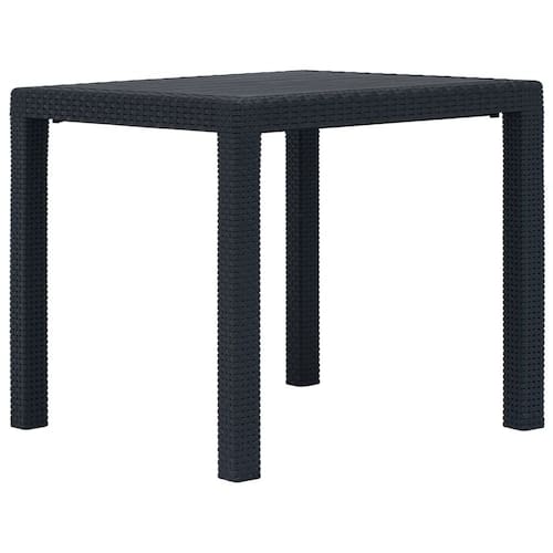 - Cor: antracite- - Material: plástico- - Dimensões: 31,1" x 31,1" x 28,3" (C x L x A) - Com um design de aparência de vime- - Resistente às intempéries- - Proposta 65 da Califórnia