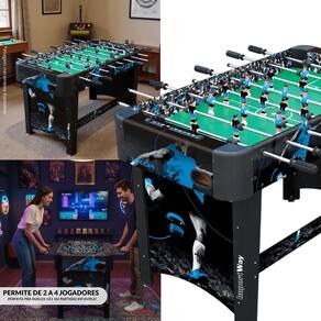 A Mesa de Pebolim Importway Soccer IWJ-008 possui acabamento técnico em tons esportivos, com detalhes que remetem a um campo de futebol. O visual moderno e resistente torna o produto adequado para diferentes tipos de ambiente recreativo.