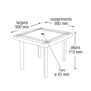 Dimensões: 90cm x 90cm x 71cm (Comprimento x Largura x Altura)