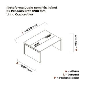 Mesa corporativa para 2 lugares com pé painel adequado para ambientes de coworking. Esse complemento é projetado para ser utilizado em conjunto com outras mesas, permitindo aumentar o número de lugares disponíveis. Ela combina funcionalidade e estilo, proporcionando um espaço colaborativo confortável para trabalhar. Você pode adicionar essa mesa a outras unidades para criar um ambiente expansível conforme necessário. Produto Montado: Sim Acompanha Manual de Instalação: Sim Ambiente Principal: Escritório codigo_ean: 7909903576144 Complexidade da Montagem: Baixa: pode ser montado por uma pessoa sozinha Cor: Cinza/Preto Cor do Produto: Cinza/Preto Cor Flex: Não Cor Interna: Cinza/Preto Dobrável: Não Escala de Brilho: Semi-Fosco Espessura do Tampo: 25 mm Formato: Retangular Itens Inclusos: 1 mesa plataforma dupla 2 lugares Linha ou Coleção: Linha Corporativa Manual de Montagem e Instalação: https://product-hub-prd.madeiramadeira.com.br/892696/documents/b28671fe-29ad-45dc-b225-9e705a09849220Dupla200220PC3A920Painel.pdf Material da Estrutura: Aço Material do Tampo: MDP Material dos Pés: Polipropileno Material Principal: MDP Montagem Flex: Não Necessita Montagem: Sim Origem do Produto: Nacional Peso: 49,136 kg Possui Painel: Não Possui Passa Cabos: Não Possui Porta Objetos: Não Possui Portas: Não Possui Prateleiras: Não Possui suporte para CPU: Não Possui Suporte para Teclado: Não Possui Vidro: Não Recomendações de Uso, Manutenção e Limpeza: Utilize pano úmido com para limpeza Sapatas Niveladoras: Sim Sistema de Montagem: Parafuso Suporta Até (kg): 30 kg