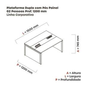 Mesa de Plataforma Dupla para 2 Pessoas Corporativa 150x120/2p Preto/Grafito