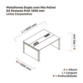 Mesa de Plataforma Dupla para 2 Pessoas Corporativa 160x120/2p Nogueira Casablanca/Preto - Bege