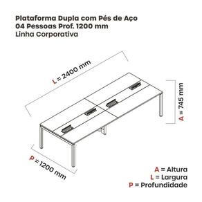 Mesa de Plataforma dupla para 4 Pessoas Corporativa 120X120/4P PDC12/12/4P Grafito/Cinza