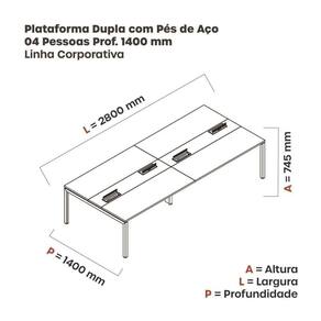 Mesa de Plataforma Dupla para 4 Pessoas Corporativa 140X140/4P PDC14/14/4P Grafito/Preto - Cinza