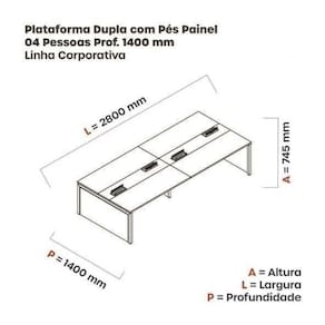 Mesa de Plataforma Dupla para 4 Pessoas Corporativa 280x140/4p Branco