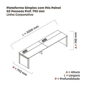 Mesa de Plataforma Simples para 2 Pessoas Corporativa 160x792/2p Pscpp160/792/2p Walnut/Cinza - Marrom
