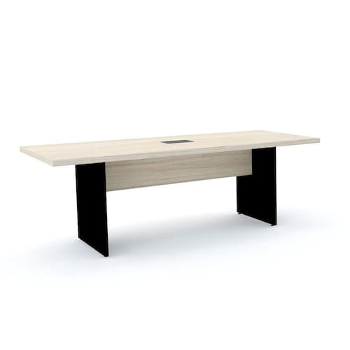 Para oferecer a sensação de bem-estar e conforto nas suas reuniões apresentamos a você a mesa de reunião pé painel com caixa de tomada PE40 em MDP 200 x 90 cm base preta, a peça ideal para seu escritório.