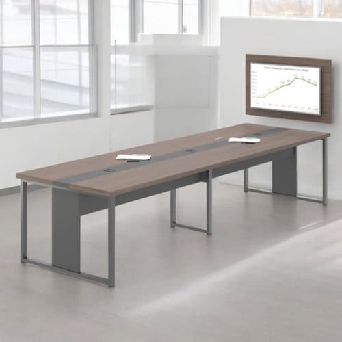 Caixas de tomodas de energia e USB acima do tampo 40mm, compartilhamento central abaixo do tampo para conexões e passagem de fios e cabos de energia. Pés em aço 50x30 e contém uma linha no meio na cor Preto.