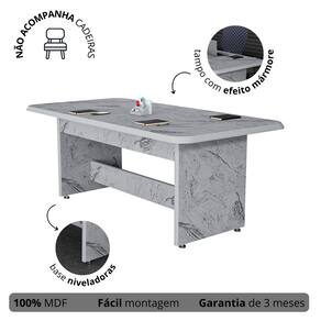 Torne suas reuniões mais produtivas e elegantes com a Mesa de Reunião, um móvel projetado para transmitir profissionalismo, conforto e modernidade.Com seu estrutura de MDF com acabamento marmorizado sofisticado e robusta, é ideal para escritórios, salas de conferência, coworkings e home offices executivos.Seu amplo tampo acomoda até 6 pessoas com notebooks, materiais de trabalho e acessórios, oferecendo funcionalidade e estilo em um único móvel. Características: Estrutura em MDF de alta densidade e resistência Estampa marmorizada com textura elegante Tampo retangular amplo e bordas arredondadas Espaço confortável para até 6 pessoas Base reforçada que garante estabilidade e durabilidade Design contemporâneo que valoriza o ambiente corporativo Fácil de limpar e combinar com diferentes estilos de decoração