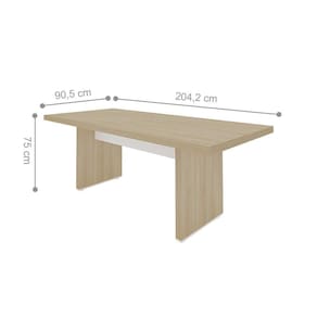 COMPRIMENTO PRODUTO COM EMBALAGEM (CM): 98 | LARGURA DO PRODUTO (CM): 204,2 | COR PREDOMINANTE: Marrom | ALTURA DO PRODUTO (CM): 75 | MATERIAL PRINCIPAL: MDP | ALTURA DO PRODUTO COM EMBALAGEM (CM): 25,5 | QUANTIDADE DE GAVETAS: 0 | LARGURA PRODUTO COM EMBALAGEM (CM): 211 | FORMATO: Retangular | PESO PRODUTO COM EMBALAGEM (KG): 60 | PESO DO PRODUTO (KG): 60 | DESCRIÇÃO DO TAMANHO: 75x204,2x90,5 | COMPRIMENTO DO PRODUTO (CM): 90,5 | CORES DO PRODUTO (FILTRO DE CORES): Carvalho/Branco | MATERIAL PARA FILTRO: MDP | NOME DO PRODUTO NO FORNECEDOR: Mesa Tamburato | ESTADO DE ORIGEM: PR | CONTEÚDO DA EMBALAGEM: 1 Mesa | INSTRUÇÕES/CUIDADOS: Limpar com pano macio e seco, não utilizar produtos abrasivos | PRODUTO PRECISA DE MONTAGEM?: Sim, a montagem é simples mas sugerimos a contratação do nosso de montagem (para os CEPs em que o está disponível) ou de algum experiente de sua preferência | MODELO: Mesa de Reunião