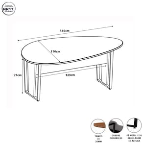 A Mesa de Reunião Orgânica combina design elegante e formato moderno com a resistência dos pés em metal. Oferece espaço confortável para reuniões e atividades colaborativas, com tampo de alta qualidade que garante durabilidade e fácil manutenção. Sua estrutura robusta e acabamento refinado a tornam ideal para escritórios e salas de reunião.
