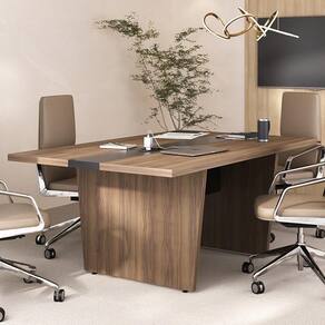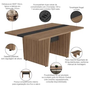 O diferencial está nas duas caixas de conectividade integradas, cada uma equipada com 2 tomadas 10A e 1 entrada RJ45, garantindo que todos os dispositivos permaneçam operacionais sem cabos aparentes, uma vez que o compartimento interno exclusivo para organização de fios mantém o ambiente limpo e , eliminando a desordem visual. Cada detalhe foi pensado para otimizar o espaço - desde a superfície ampla que acomoda confortavelmente participantes até o design sóbrio que transmite autoridade. Em outras palavras, a mesa para escritório onde a inovação tecnológica encontra o requinte executivo.