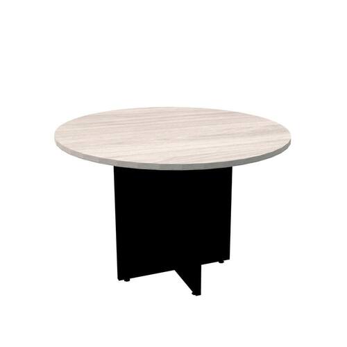Mesa de Reunião Redonda 110 x 110 cm Pé Painel PE25 em MDP Nogueira CasaBlanca e Base Preta - Bege Claro