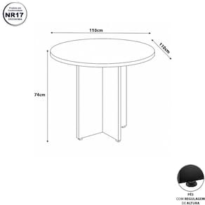 A Mesa de reunião redonda ideal para reuniões rápidas e ambientes colaborativos. Possui base com pé painel que garante estabilidade e um design moderno. Acomoda até 4 pessoas com conforto, perfeita para escritórios, salas de espera ou espaços de coworking.