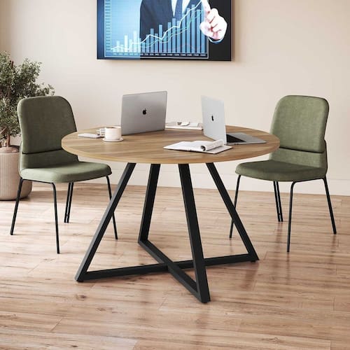 Mesa de Reunião moderna para até 4 pessoas, ideal para escritórios e salas corporativas. Possui tampo em MDP de 2,5cm, pés em aço com acabamento fosco e sapatas reguláveis para maior estabilidade. Combina resistência, conforto e design sofisticado para ambientes profissionais.