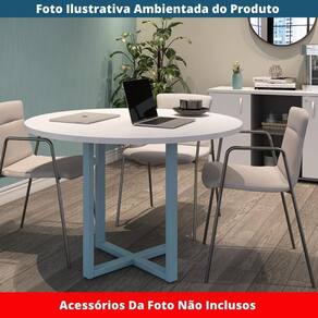 Mesa De Reunião Redonda P25 Pandin 110 Cm (largura) Tampo Mdp Branco Pé Aço Tubular Azul Dali A Mesa de Reunião Redonda é a escolha perfeita para espaços corporativos e colaborativos que buscam sofisticação, durabilidade e funcionalidade. Seu design elegante e compacto é ideal para fomentar a interação entre equipes e agregar valor ao ambiente de trabalho. Características do Produto: