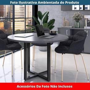 Mesa de Reunião Redonda P25 Pandin 110 cm (Largura) Tampo MDP Grafito Pé Aço Tubular Preto - Cinza