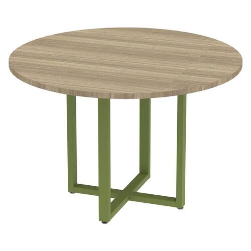 Acabamento: Bordas arredondadas com fita em PVC de 2mm para maior resistência e acabamento refinado. Dimensões: 1100mm (diâmetro) x 25mm (espessura). Cores Disponíveis: Padrão Pandin. Pé Tubular: Estrutura central confeccionada em chapa de aço 18 (1,20mm) com design tubular robusto, medindo 50mm (L) x 30mm (P). Inclui passagem para fios, promovendo organização e funcionalidade.