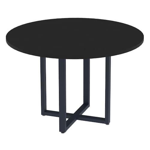 Mesa De Reunião Redonda P25 Pandin 110 Cm (largura) Tampo Mdp Preto Pé Aço Tubular Azul Del Rey