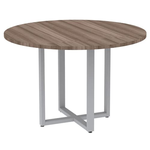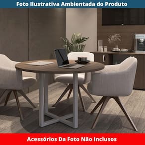 Mesa de Reunião Redonda P25 Pandin 110 cm (Largura) Tampo MDP Walnut Pé Aço Tubular Cinza - Marrom