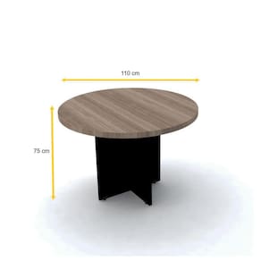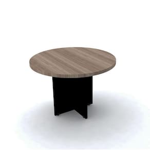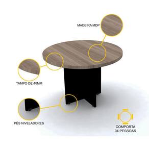 - Mesa de reunião redonda, confeccionada em madeira (MDP).