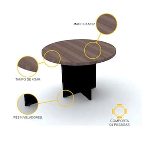 - Mesa de reunião redonda, confeccionada em madeira (MDP).