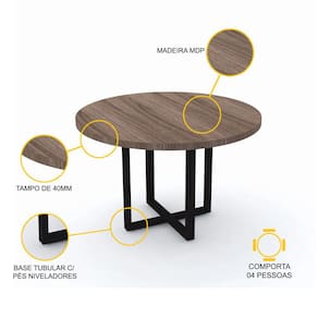 Já chega de alugar salas para fazer reuniões, não é mesmo? Com essa mesa, a história é vida nova, mesa nova, negócios novos. Com essa mesa de reunião redonda na cor walnut (madeira escura) e pés tubulares, receber clientes, fazer reuniões de brainstorm, realizar entrevistas e outras atividades em grupo vai ficar muito melhor e mais profissional. Espaçosa, elegante e robusta, essa mesa comporta até quatro pessoas, num tamanho ideal para reuniões produtivas e dinâmicas. Além disso, ela oferece quatro opções de cores em tons de madeira mais naturais, mais claros ou mais escuros, que combinam facilmente entre si ou com outros móveis para complementar o novo tom acolhedor e colaborativo de sua vida profissional. Escolher essa mesa redonda da Pandin é escolher praticidade, design, elegância, montagem fácil e produtividade garantida no dia a dia. Essa peça faz parte da linha PE40 da Pandin, que combina design clássico e sofisticado com beleza e funcionalidade, muito estilo e o melhor custo-benefício do mercado.