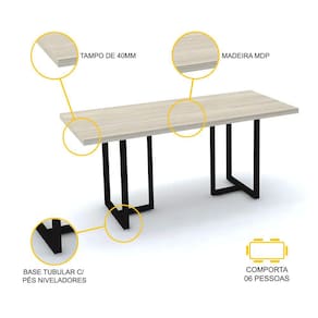 - Mesa de reunião retangular, com tampo de madeira (MDP) e base tubular com pés niveladores.