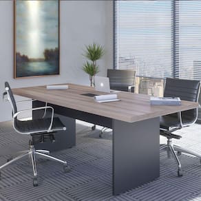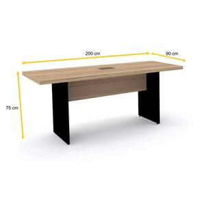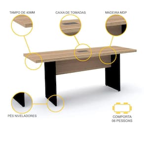 Uma mesa de reunião que acomoda até 6 pessoas, em modelo, textura e tom sóbrios, que vão bem com qualquer decoração corporativa. Esta grande mesa retangular tem tampo em madeira cor natural e pés pretos, com tudo o que é essencial para uma reunião confortável e memorável. Com caixa Power Box no centro, ela vem com tudo pensado para a instalação de telefones, aparelhos de conferência e cabos de rede, fazendo desta mesa uma peça perfeita para salas de grandes reuniões e apresentações internas ou para clientes. Esta mesa é uma peça com a qualidade da linha PE40 da marca Pandin, conhecida por seus móveis de escritório de design clássico e sofisticado que unem beleza, funcionalidade e estilo ao melhor custo-benefício do mercado. Para que seu projeto fique completo, consulte nossa loja e encontre as outras opções de mesas para escritório, mesas modulares e mesas com gavetas desta linha. Confira também os arquivos, estantes, gaveteiros e armários que complementam sua escolha.