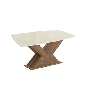 Mesa de Sala Jantar Amora c/Tampo Madeirado c/ Vidro 90x170cm Nogueira/Off White/Vidro Off White - Kappesberg
