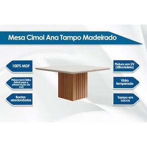 Mesa de Sala Jantar Ana c/ Tampo Madeirado c/ Vidro 130x130cm Cinamomo/Off White - Cimol