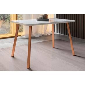 Mesa de Sala Jantar Ariel Menor 1602 c/ Tampo Madeirado Vidro 120x80cm Rose/Off White - Carraro