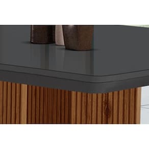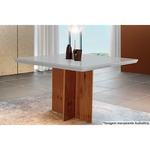 Mesa de Sala Jantar Berlim c/ Tampo 90x90cm Madeirado Vidro Canto Curvo - Imbuia Ripado 3D/Off White - Rufato