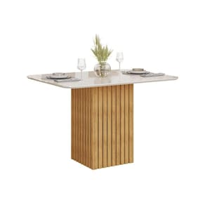 Mesa de Sala Jantar Canes c/ Tampo Madeirado c/ Vidro Curvo 120x90cm Cedro/Off White - DJ Móveis