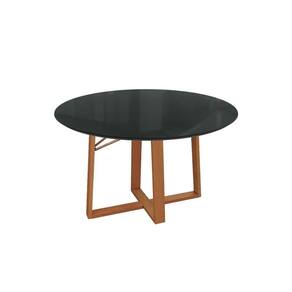 Mesa De Sala Jantar Elma Madeira Maciça C/tampo Madeirado C/ Vidro 105x105cm Carvalho/preto Fosco/vidro Preto - Kappesberg